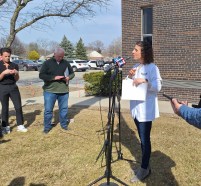 Kate Guzman, Oakland County health officer, speaks to media.